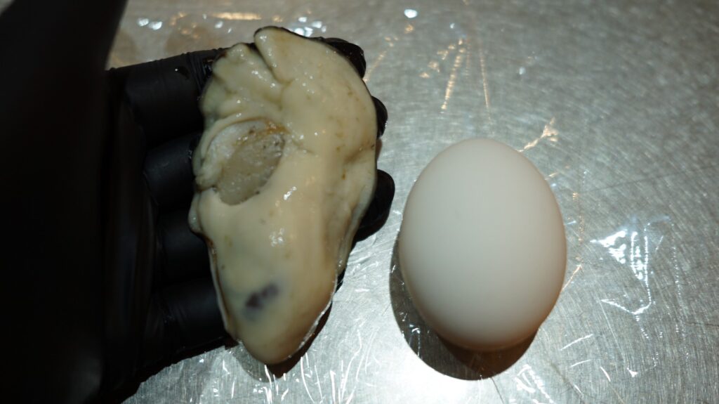 一般的にカキは身の80~90%が水分と言われており、加熱によって水分が蒸発・流出し身が縮みます。